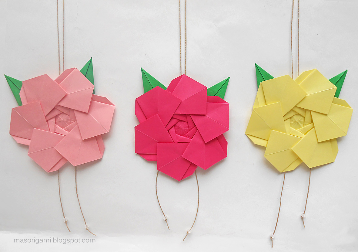 La flor es modular y está armada a partir de 5 rectángulos de papel. Es una variación del Poinsettia Floral Ball de Meenakshi Mukerji.
