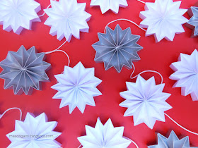 El autor de las estrellas es Hana Vyoralova Leporello. Vi el modelo en internet, y como me gustó mucho comencé a hacer diferentes pruebas hasta que logré el diseño final. Tienen la particularidad de que se unen en el centro con un pequeño nudo.